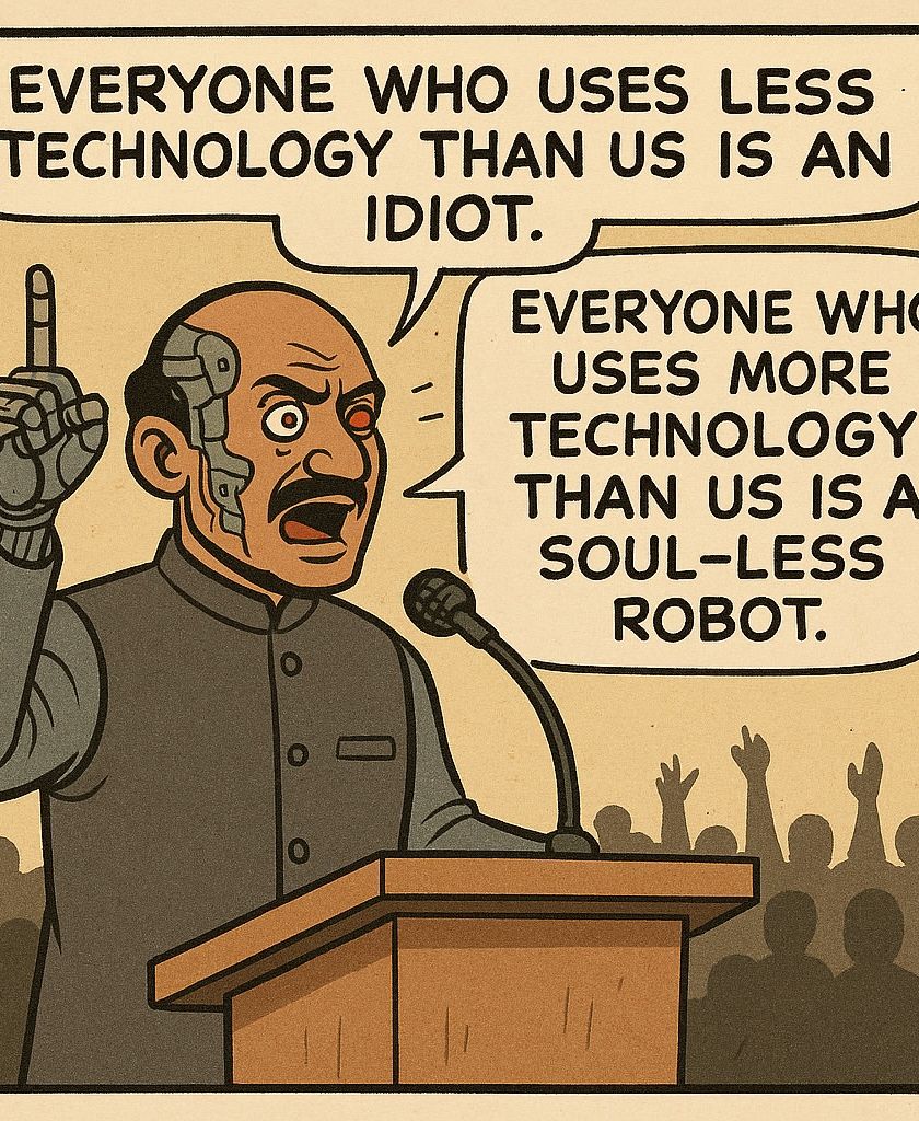I find the surreal in everyday Indian life, twisting reality just enough to ask questions about our world. This series includes everything from floating citizens and amphibious autos to sentient kirana stores and shrines to AI gods.