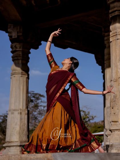 - Sarees, half-sarees, lehengas, kurtis - I've modeled it all, with a special love for traditional half-saree modeling and rich Kanjivarams.