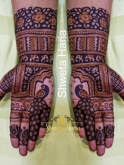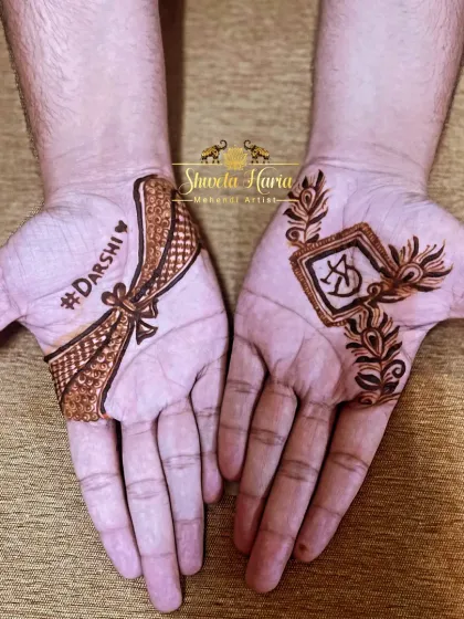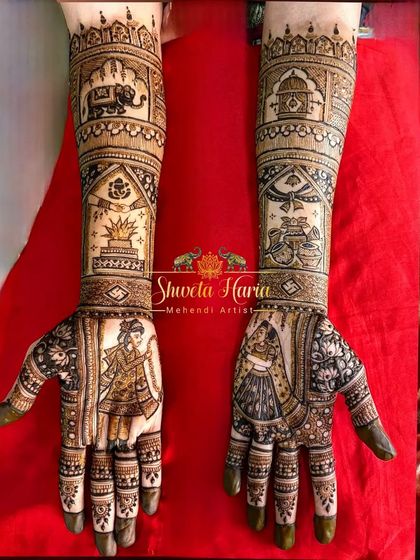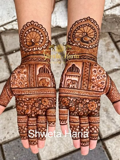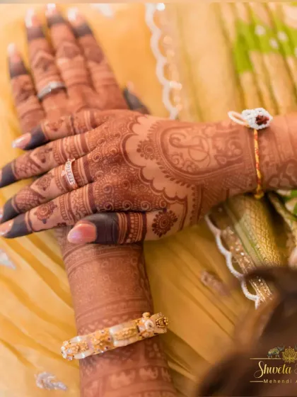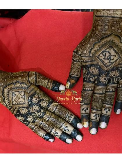Hi, I’m Shweta Haria from Mumbai. Mehendi isn’t just lines and leaves for me, it’s like weaving someone’s shaadi ki kahani (wedding story) on their hands. I’m obsessed with big, bold bridal designs - peacocks, dhol, shehnai, all that jazz. But what really gets me is adding those quirky bits - maybe your wedding date, a couple’s sketch, or even something cheeky like 'Hot Sasumaa'. Best feeling? Seeing a bride giggle at her fresh stain.