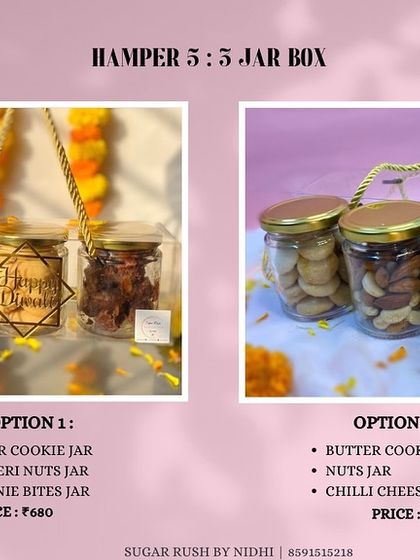I make fresh, eggless dessert hampers with a mix of sweets and savory snacks, and I can personalize them for any occasion.