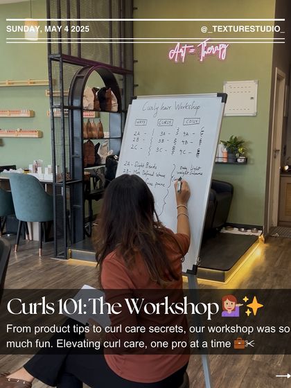 We’re Texture Studio, not your regular hair spot. We wanted a cozy hangout, not a stiff salon. Shreya started us off, believing every hair texture’s got its own swag. No forcing straight hair here—just real, natural vibes. Our ginger cat Sushi runs the show (and expects cuddles). We laugh, we share stories, we help street animals. Our 'Sunday Scoop' is where we spill the tea, foils and all. It’s all heart, all community.
