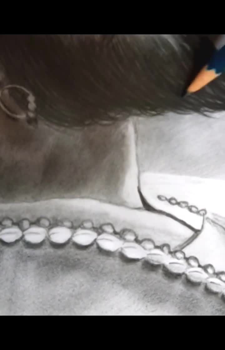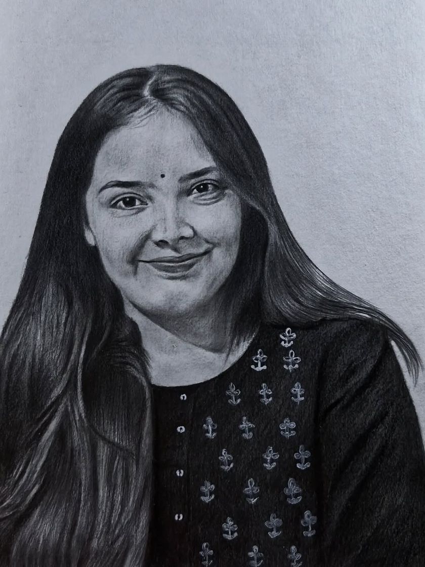 While I primarily work in classic black and white graphite, I sometimes add a subtle splash of color to make a portrait stand out. This can be used to highlight a bindi, a piece of clothing, or other important details to add a unique, personal touch to your artwork.
