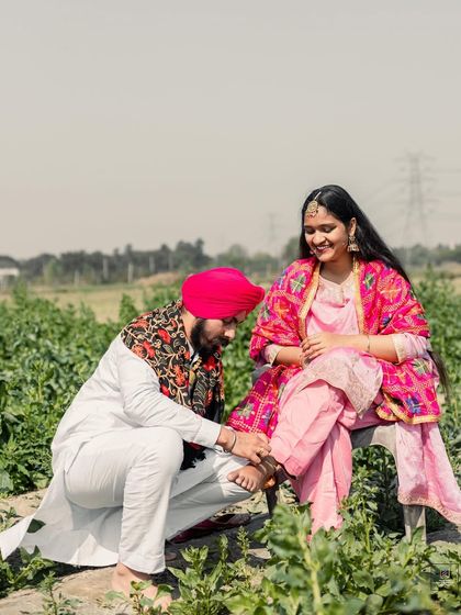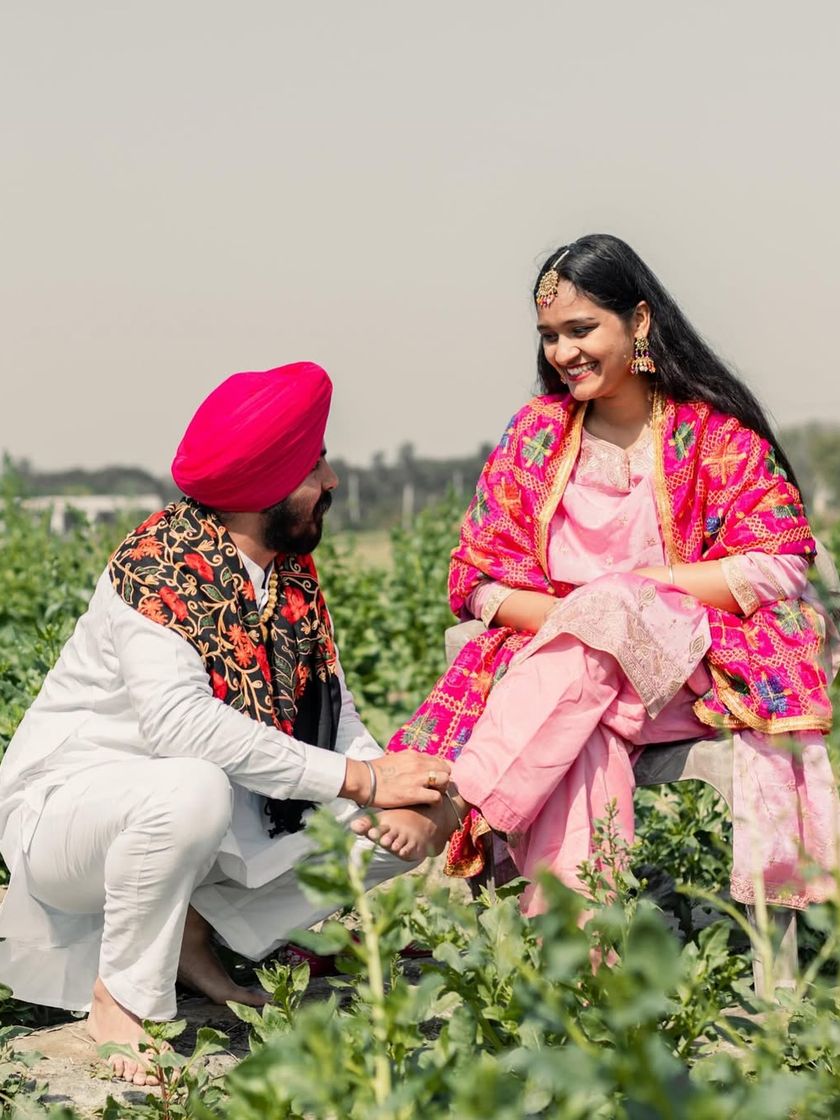 We love capturing the simple, heartfelt stories found in the countryside. This series, shot in the beautiful fields of Punjab, celebrates love with a traditional and earthy touch. From playful moments in the hay to classic poses, these photos are full of warmth and cultural authenticity.