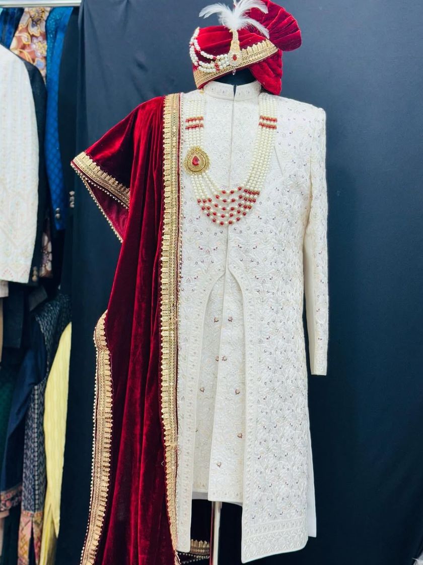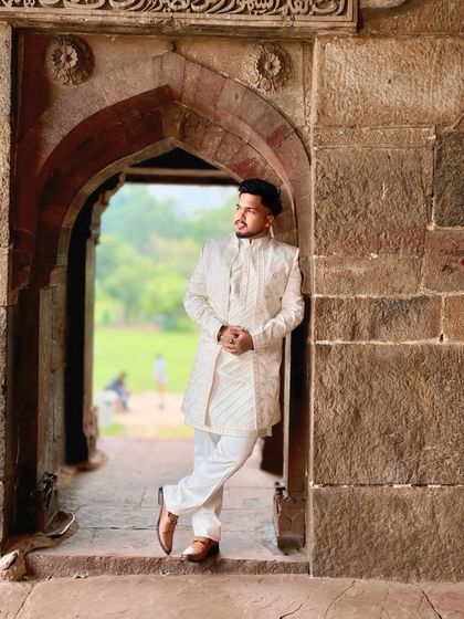 This is the first look into my world of bespoke menswear. I've selected these pieces to show you the range of what I do, from the grandest wedding sherwani to a sharp, modern tuxedo. Each outfit is a statement, crafted with precision and a passion for style that helps you wear your story.