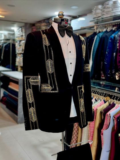 We specialize in creating personalized suits that reflect individual style preferences. Our bespoke suits feature detailed handwork and embroidery, crafted using premium fabrics like velvet and silk.