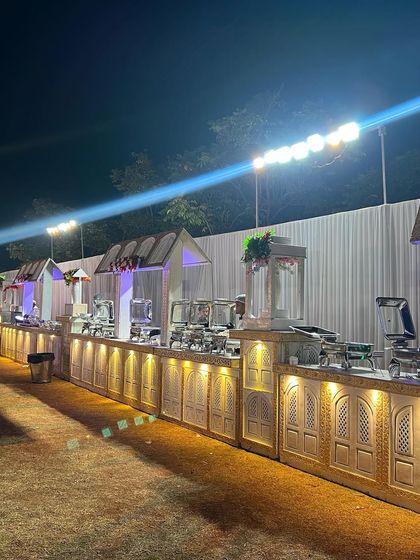 I design custom food counters that become a part of your event's decor. We can create setups that match your vision, from traditional white and gold elegance to a modern black and white theme, ensuring the food presentation is as memorable as the taste.