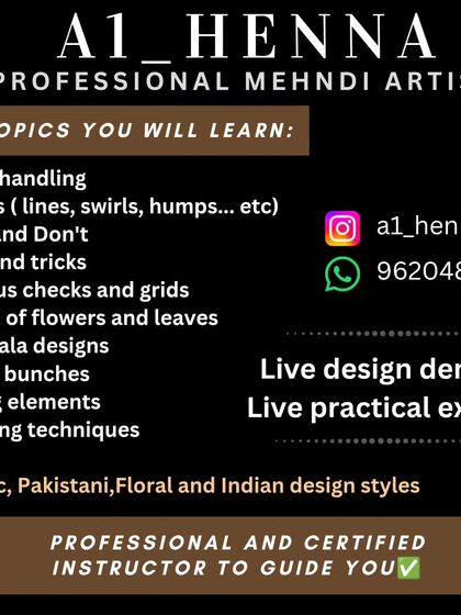 Henna Classes (Offline, Bangalore) - I teach offline henna classes in Bangalore, covering basics, advanced styles, and give a certificate too.