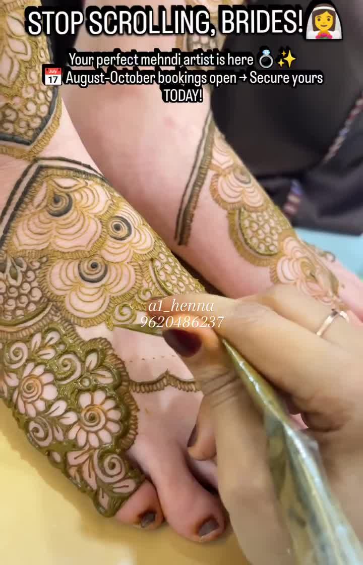 Complete your bridal look with stunning henna designs for your feet. I create beautiful, intricate patterns that complement your hand mehndi, from simple ankle bands to full coverage up to the calf. Each design is carefully applied using my safe, organic henna.