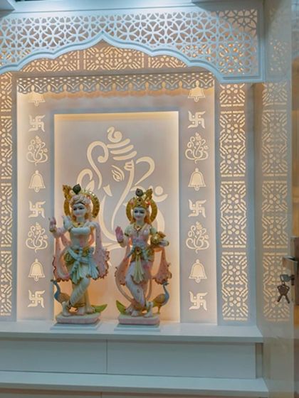We specialize in crafting modern temple designs that blend traditional motifs with contemporary aesthetics. Our temples feature intricate laser-cut patterns, including traditional "Om" symbols and detailed carvings.
