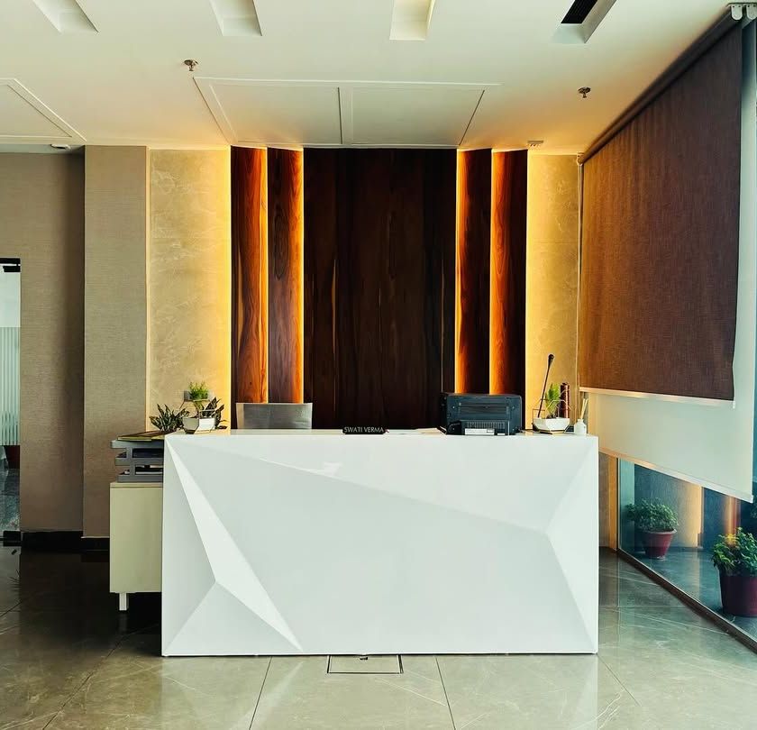 The reception is the first point of contact and must reflect your brand's identity. I design lobby and waiting areas that are both welcoming for visitors and functional for staff, incorporating elements like statement reception desks, comfortable seating arrangements, and brand-aligned aesthetics.