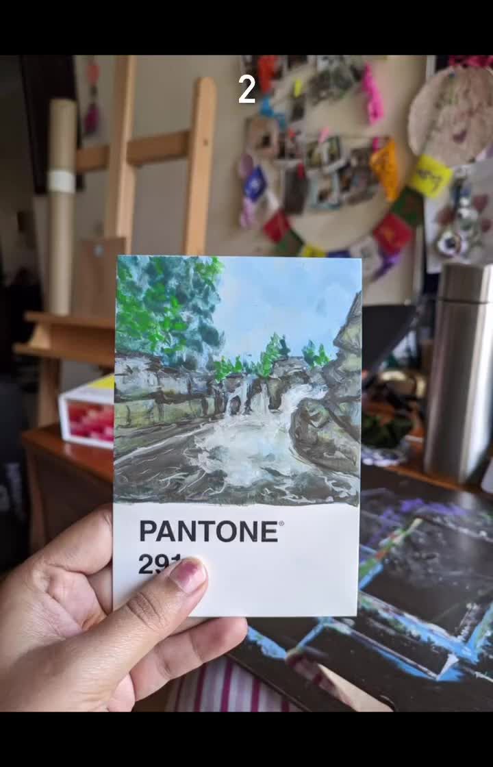 Art is also about play. Here you'll find my ongoing projects, like painting tiny landscapes on Pantone cards or creating the smallest possible art. This is where I experiment with new ideas and just have fun with colours.