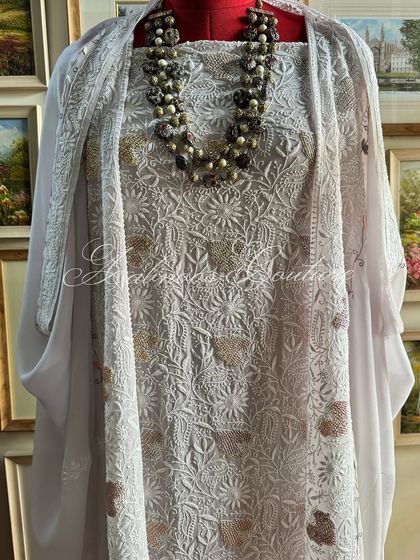 We make hand-embroidered Chikankari outfits using skilled artisans and premium fabrics, so every piece is unique and not mass-produced.