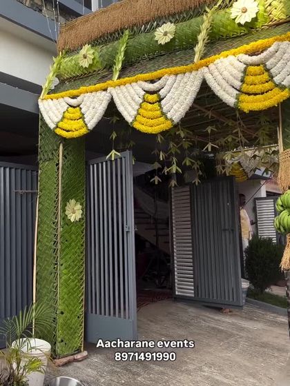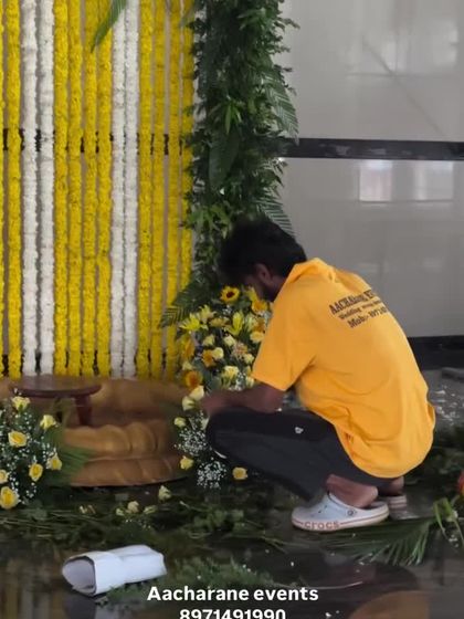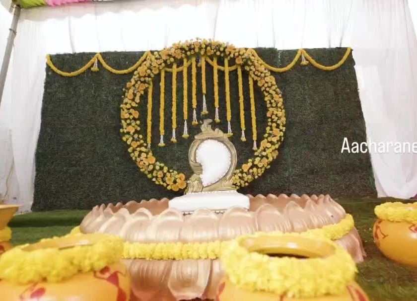I provide decorations for all the unique rituals in a South Indian wedding. This includes beautiful floral floor carpets for the 'sapthapadi' or custom backdrops for ceremonies like the bangle ceremony ('baale shastra'), ensuring every tradition is honored beautifully.