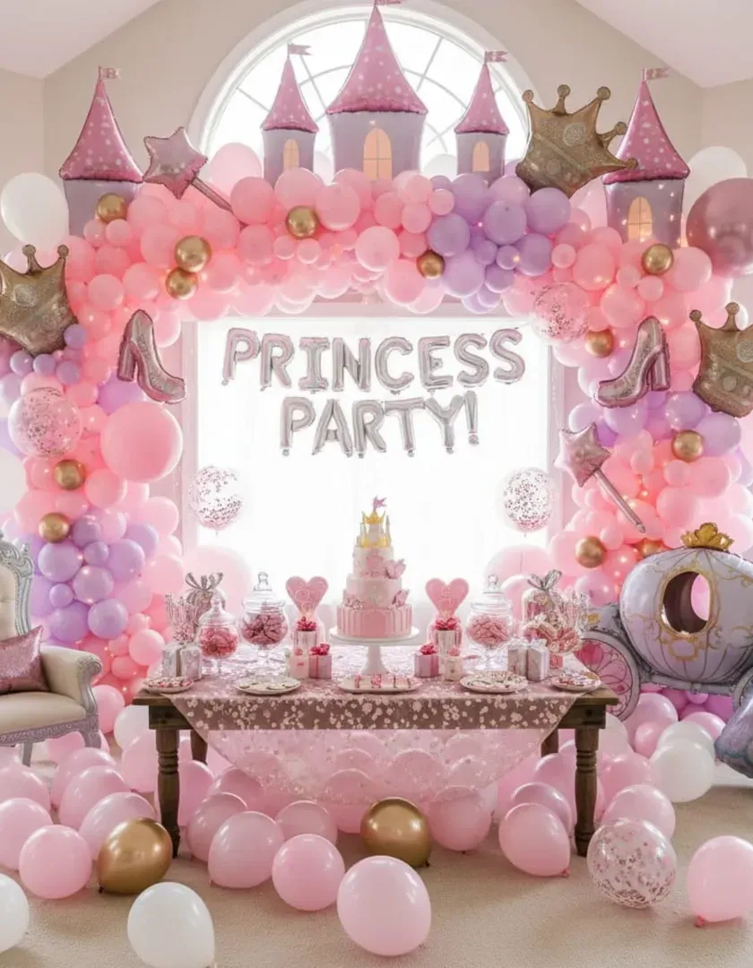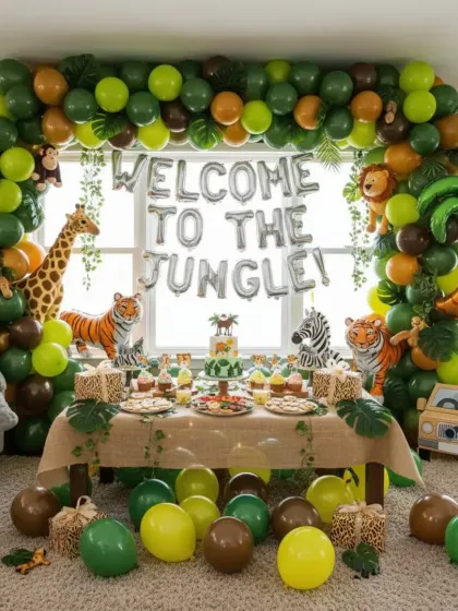 We specialize in creating unforgettable themed parties for your baby's first birthday. We can design everything from popular concepts like Jungle Safari and Princess Castle to custom ideas, including grand balloon arches, detailed props, and personalized signs.