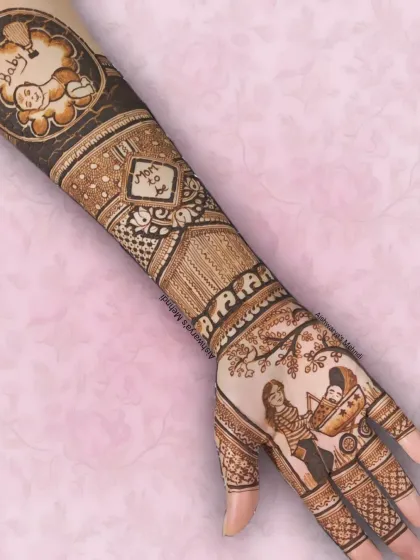 Welcome your little one with beautiful and unique henna art. I create custom designs for moms-to-be, featuring cute baby motifs, cradles, parent portraits, and blessings for this special new chapter.