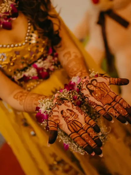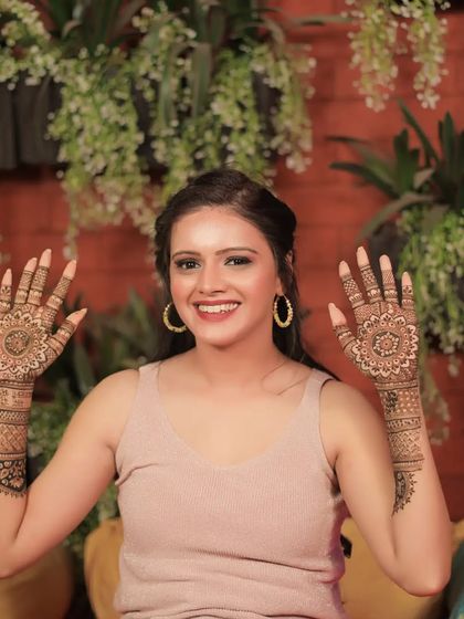 This is where your story comes to life. I specialize in creating personalized bridal mehndi, weaving couple portraits, wedding scenes like the varmala or doli, and meaningful symbols directly into your design.