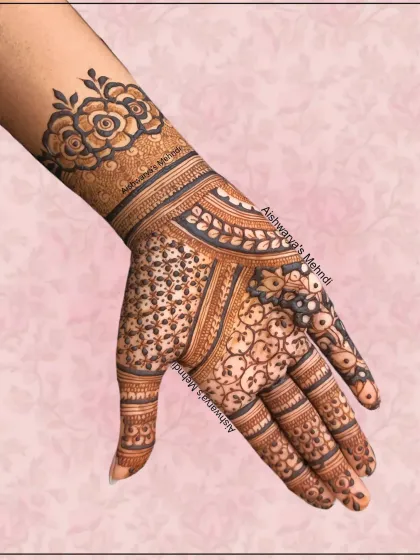 For a contemporary yet elegant look, I offer Arabic and floral fusion designs. These styles often feature bold lines, flowing vines, and beautiful flowers, perfect for guests, festivals, or brides who prefer a less dense pattern.