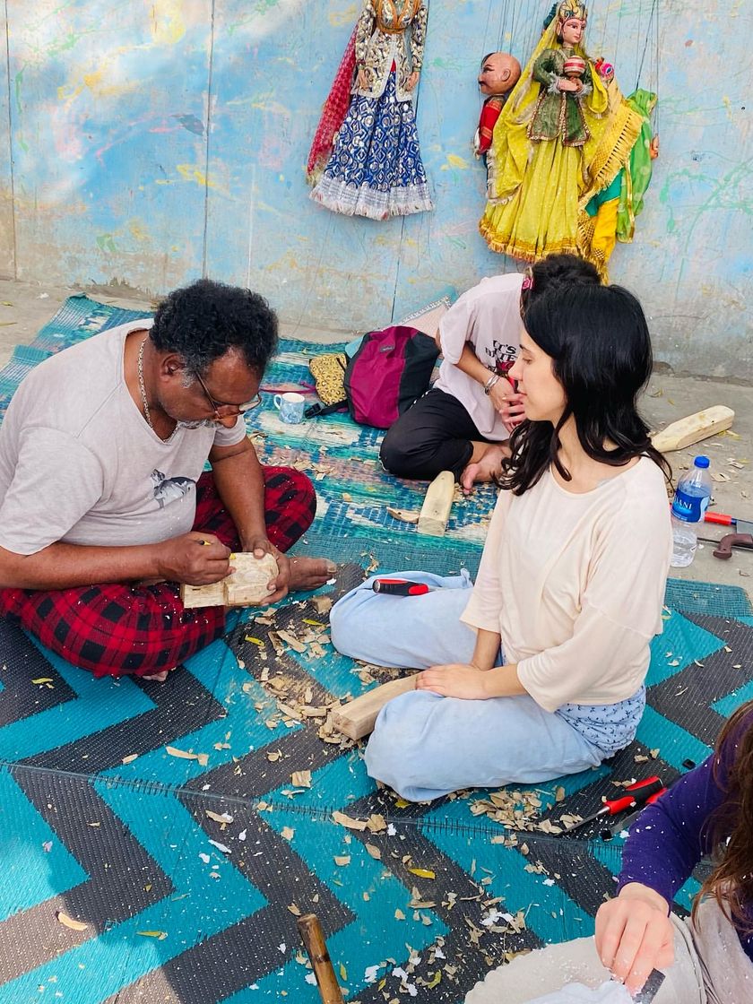 I share my knowledge through hands-on workshops where you can learn to make your own puppet from scratch. I guide you through every step, including the traditional techniques of wood carving, papier-mâché, face painting, and costume stitching.