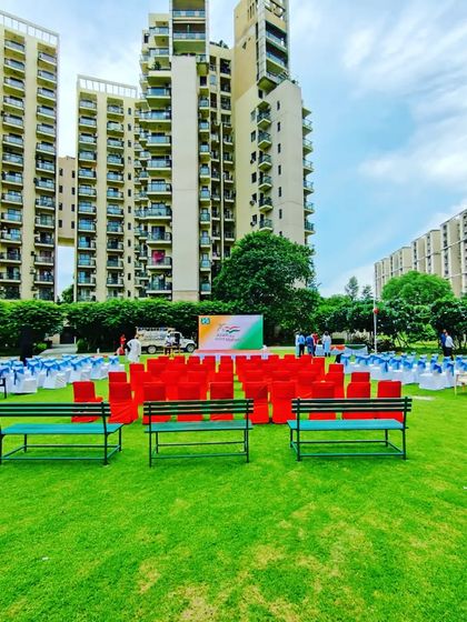 - Navratri society event management means big outdoor canopies, fairy lights, and a stage for performances. Independence Day gets tricolor decor everywhere.
