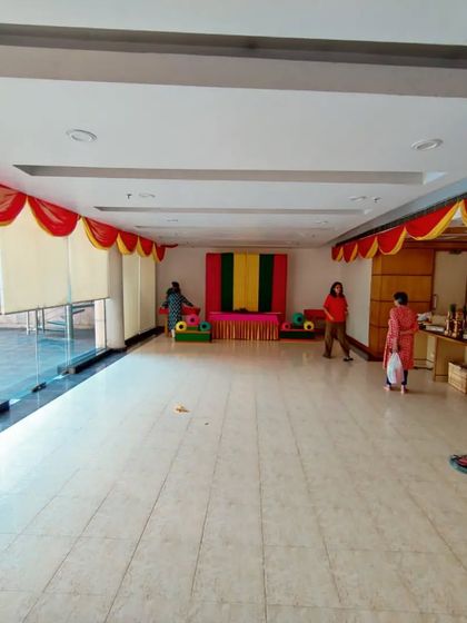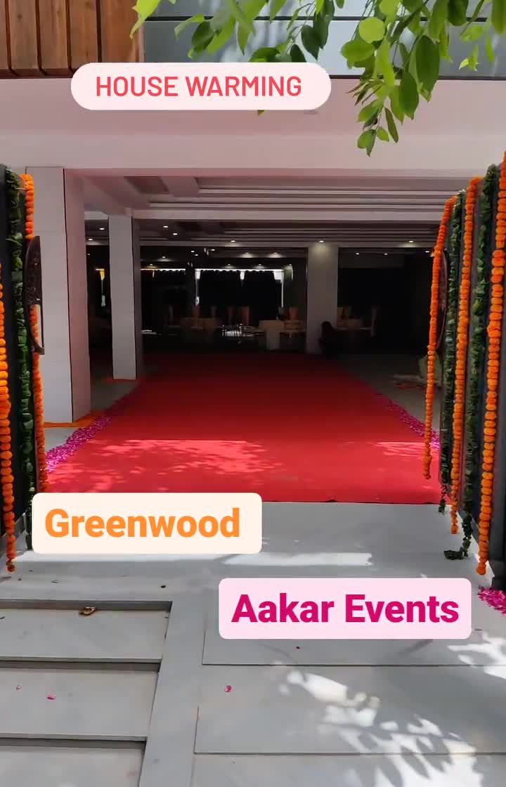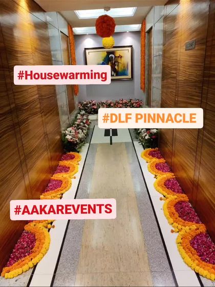 I provide complete solutions for housewarming ceremonies, from entrance decoration and hawan arrangements to catering. Setups can include traditional floor seating with mattresses or formal round table dining for guests.