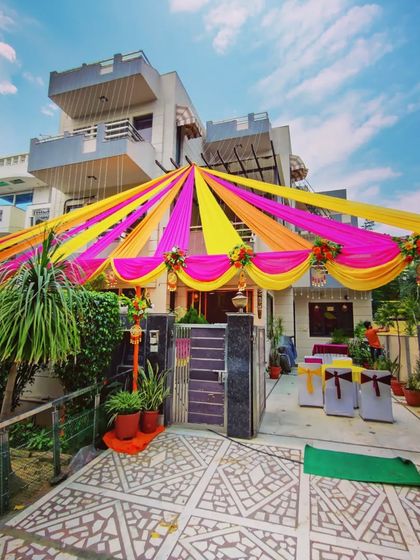 Weddings & Pre-wedding Functions - Specialists in grand entryway decor, Haldi & Mehandi home decor, and all wedding setups at home.