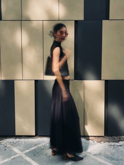 So, I started out at NIFT Delhi, knee-deep in knitwear and jury stress. Those old pieces from my grad project? Still lying around, sometimes I dig them out and remix them for fun. Life’s been a rollercoaster - new office jitters, therapy breakthroughs, and a support system I swear by (shoutout to my soul sister and my dog Junior, who pretty much runs my world). Grew up in fauji cantts, no screens, just green. Nature and Bapu Bazaar keep me sane. Jai-poor vibes, always.