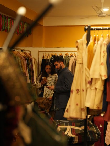 So, I started out at NIFT Delhi, knee-deep in knitwear and jury stress. Those old pieces from my grad project? Still lying around, sometimes I dig them out and remix them for fun. Life’s been a rollercoaster - new office jitters, therapy breakthroughs, and a support system I swear by (shoutout to my soul sister and my dog Junior, who pretty much runs my world). Grew up in fauji cantts, no screens, just green. Nature and Bapu Bazaar keep me sane. Jai-poor vibes, always.
