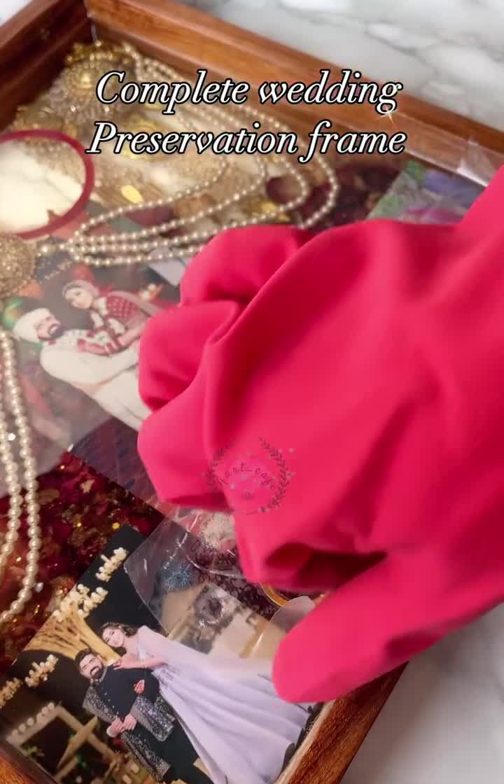 Your wedding is full of small, significant items beyond just the varmala. I specialize in creating comprehensive keepsake frames that can include your wedding cards, kaleera, chooda, sehra, kalgi, and even sacred items like moli or griha pravesh footprints. Let's combine all your precious memories into one magnificent piece.