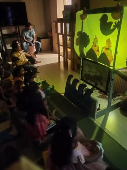 I offer a unique and mesmerizing shadow puppet show, which is especially popular for festivals like Dussehra and Diwali. Using light and shadow, I narrate epic tales like the Ramayan, creating a magical experience that captivates children's imaginations in a very special way.