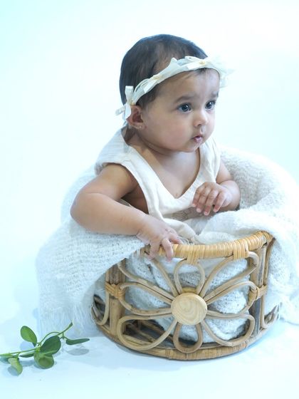 We create timeless portraits of your baby, from sleepy newborn poses to playful milestone sessions. Our studio is equipped with a variety of props like baskets, blankets, and themed outfits to bring your vision to life.