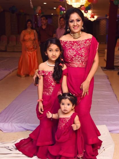 We design contemporary Indian and Indo-Western wear for all ages, from festive sarees to kids' birthday gowns. Our focus is on comfortable fits, stylish cuts, and exquisite hand embroidery to make every outfit special.