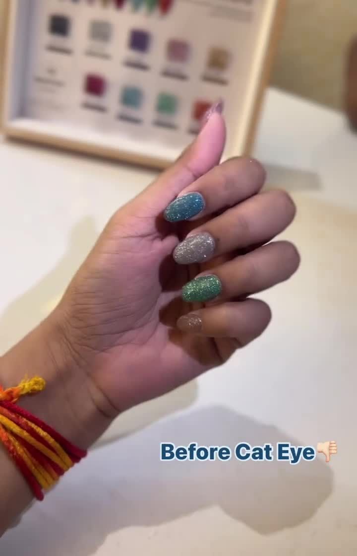Watch how we use special magnetic polish to create the stunning, multi-dimensional Cat Eye effect. This design shifts in the light for a truly unique and captivating finish.