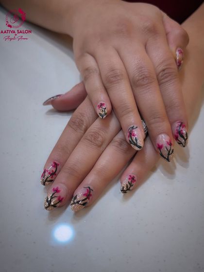 See how we transform nails with custom extensions and beautiful art. We offer all popular shapes like almond, stiletto, and coffin, creating the perfect canvas for our designs and giving you the length and strength you desire.