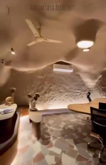 My own studio is a space where I experiment with my core ideas of raw luxury and organic architecture. Inspired by natural caves, the design features flowing, hand-sculpted walls and ceilings, custom lighting, and earthy materials to create a sanctuary for creativity.