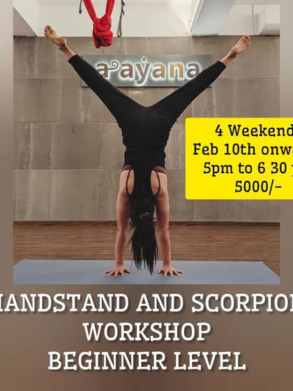 We run focused workshops where you learn handstands, aerial yoga, Alexander Technique, sound bath healing, mudgar strength, and join bhajan sessions, all designed for practical skills and real wellness beyond regular yoga classes.