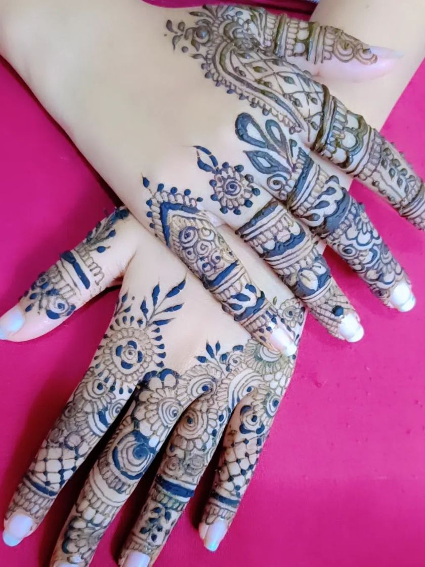 Sometimes, less is more. I offer trendy and stylish options like detailed finger designs, elegant wrist bands, and beautiful mandala art for a modern and classy look.