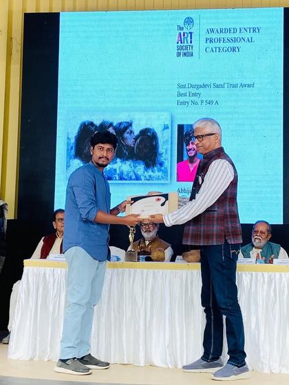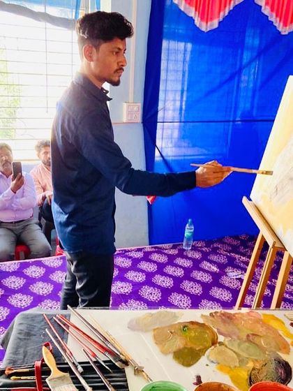 I’m Abhijeet. Art for me started at Sir J.J. School of Art, but honestly, most of my inspiration comes from wandering the city, soaking in the clash of slums and skyscrapers. You’ll find me sketching in the middle of a busy street or chatting with kids in the basti. I travel a lot for art camps, from Pahalgam to Kerala, always chasing stories. Got a Kalanand Award and a Lalit Kala Akademi nod, but what drives me is painting what’s real – what needs to be seen and heard.
