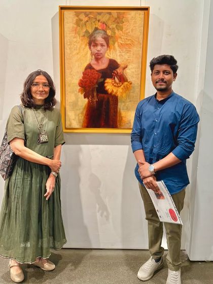 I showcase my artwork through regular exhibitions across prestigious Indian venues, focusing on social themes and cultural heritage. My exhibitions feature oil and acrylic paintings that highlight the stories of marginalized communities, particularly slum children, using realistic and impressionistic styles with impasto techniques.