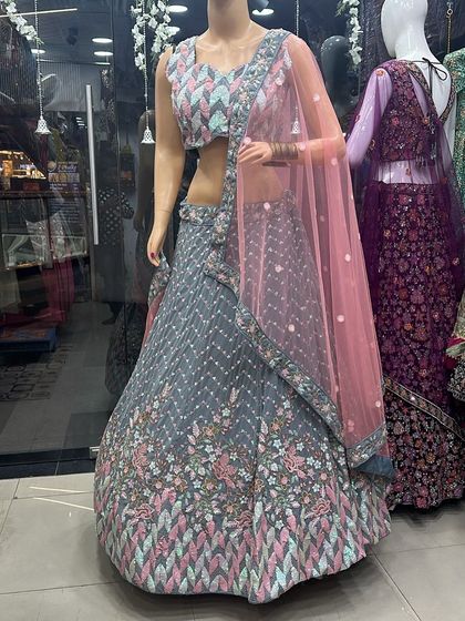 We offer intricately designed bridal lehengas available for rent, featuring rich embroidery and embellishments. Our collection includes various colors and styles suitable for weddings and related ceremonies.
