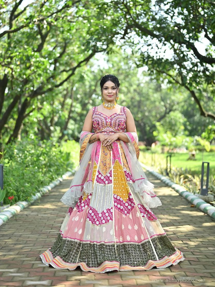 Perfect for sangeet, mehendi, or any festive celebration, these lehengas are all about color and energy. I use techniques like patchwork, mirror work, and bold embroidery on fabrics that are fun to wear and look incredible in photos.