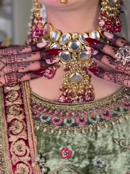 - Brides: Full bridal sets - heavy Kundan, Polki, even Pakistani jhoomar/passa. Includes choker, rani haar, statement earrings, maang tikka, nath.