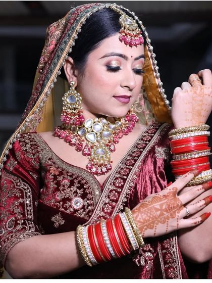 I offer complete bridal packages including magnificent lehengas and perfectly matched jewellery sets. Find everything from heavy Kundan and Polki sets with rani haars to elegant Pakistani-style jhoomar sets for your special day.