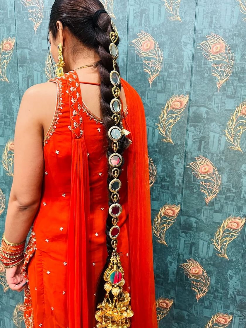 The right accessory can transform your entire look. I provide unique pieces like traditional hair accessories (parandi), elegant Pakistani-style jhoomar/passa, and other statement items to complete your outfit.