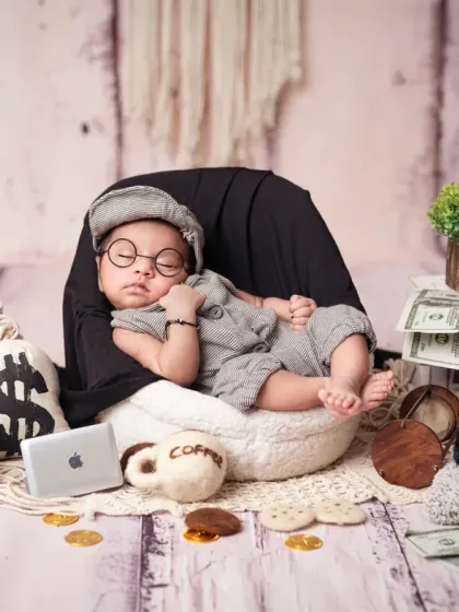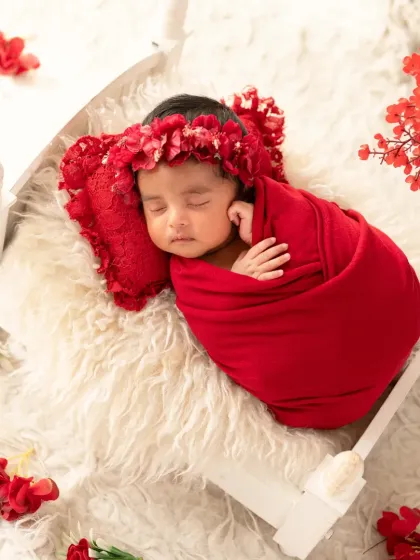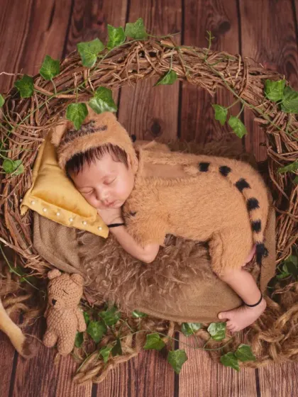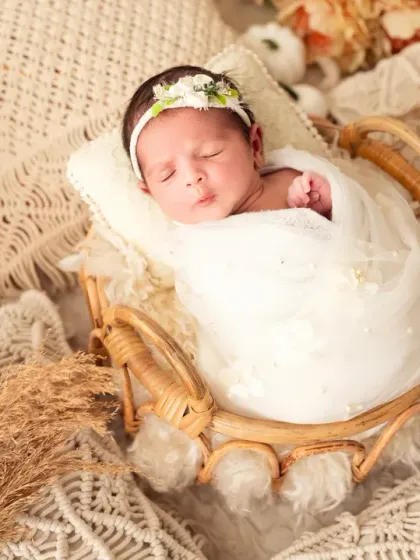 We do newborn photoshoots in our studio for babies under one month, with different themes, props, and family portraits, focusing on safe and natural moments.