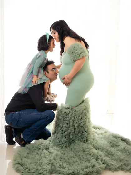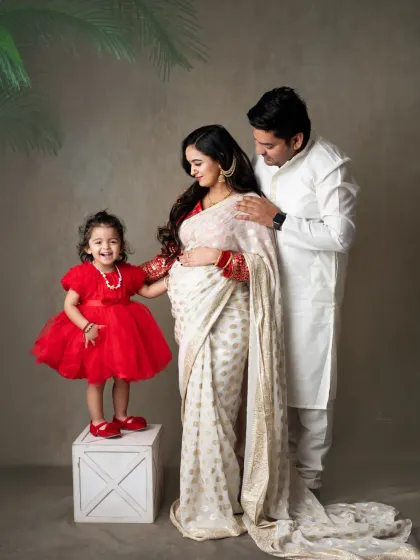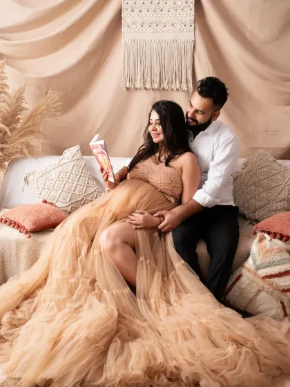 We’re a husband-wife team who guide you through maternity photoshoots with options for solo, couple, or family sessions, flexible styles like gowns or sarees, and a focus on capturing real moments that reflect your story.