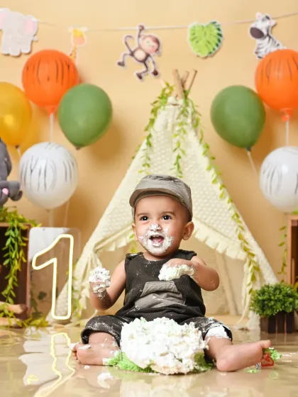 I photograph families and kids of all ages in my Ghaziabad studio with themed setups, milestone sessions, and a relaxed space where children can be themselves.