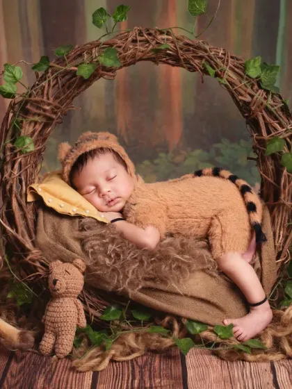 Let's have some fun and bring your creative ideas to life. From a tiny "Boss Baby" to a cuddly jungle animal, I have a variety of cute costumes and themed setups to make your baby's first portraits truly unique.
