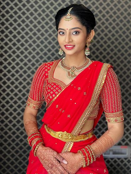 We create authentic South Indian bridal wear with traditional hand embroidery and custom designs
