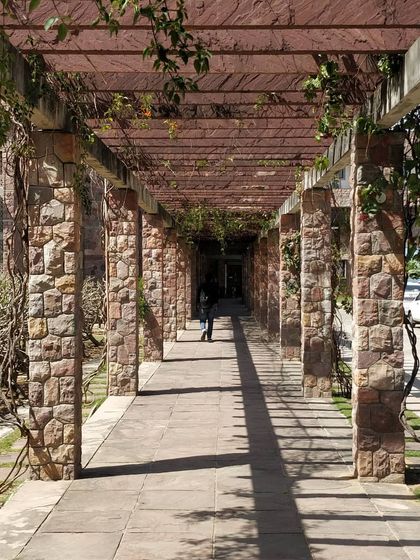 - Adaptive reuse in institutional buildings is something I love - old doors from a haveli (mansion), excavated earth for new walls. Waste isn’t just waste for me.