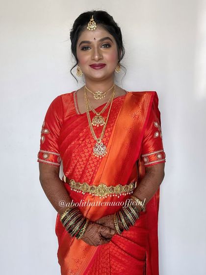 Pata nahi ka (you know what?), I’m obsessed with Maharashtrian bridal makeup - the chandrakor bindi, nath, and that Peshwai touch. But I also do South Indian, North Indian, and Christian bridal looks. Each one has its own charm.